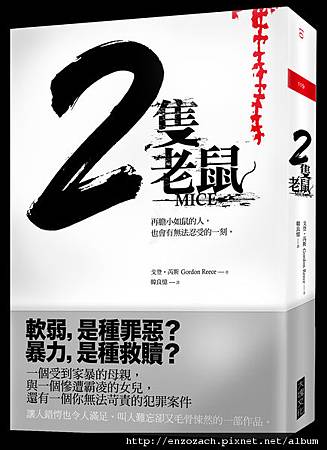 這本《2隻老鼠》的霸凌事件是最常見的校園霸凌,而這只是導火線。被欺壓的人,其實並不是不懂得反抗,有時也並非是懦弱。我想有些原因,還是個性使然吧!就像有些人就是天生外向和內向。而當那些外向的人,無論是家庭因素或是新聞報導關係導致,其他的種種原因,只要讓他們感受到那些打不還手罵不還口的人的存在。再加上無旁人的制止,甚至是吆喝。一樁樁令人悲痛的故事,就不斷的在這社會上發生。